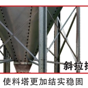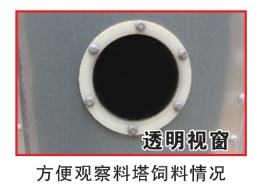 鍍鋅料塔原材料均采用國內大型知名鋼廠家生產(chǎn)的鍍鋅層含量275g的鍍鋅板,具有防腐蝕、強度高、使用壽命長的優(yōu)點。料塔上蓋采用自動松緊控制結構,在地面扶手可對料塔自由進行開啟和關閉操作。料塔錐體設有有機透明觀察窗,方便時時觀測輸料情況。料塔組成每個連接縫隙均采用專用密封膠密封,具有防風雨、牢固、使用壽命長等優(yōu)點。